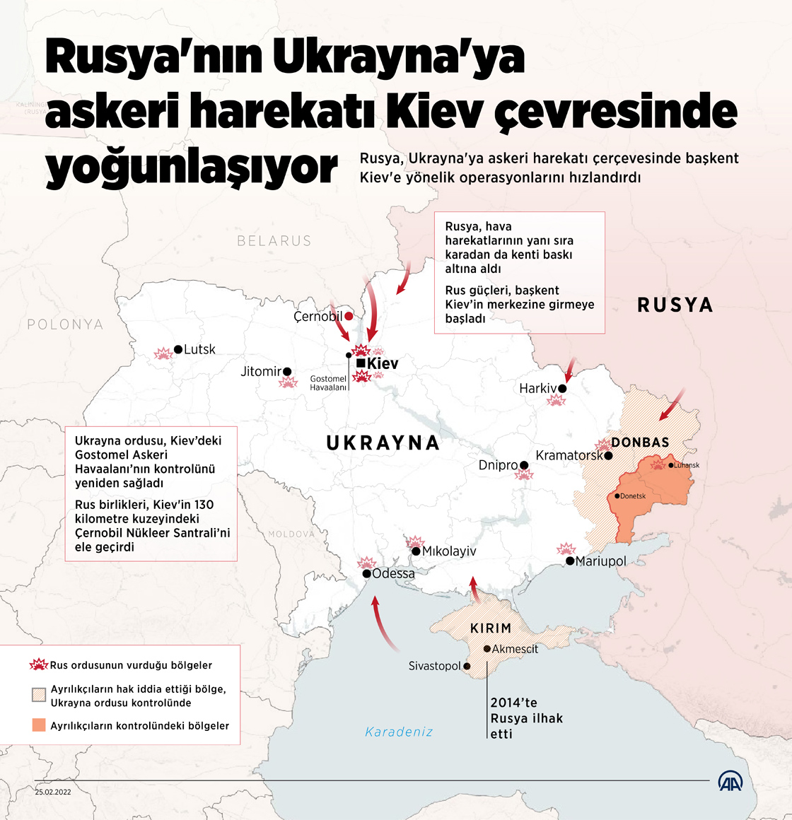 Rusya, Ukrayna'ya askeri harekatı çerçevesinde başkent Kiev'e yönelik operasyonlarını hızlandırdı. (Grafik: Yasin Demirci / AA)