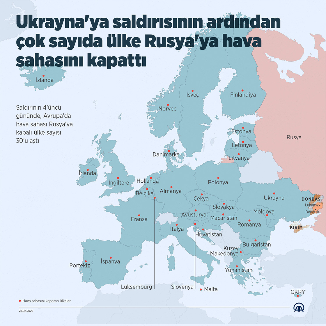 Ukrayna'ya saldırısının ardından çok sayıda ülke Rusya'ya hava sahasını kapattı