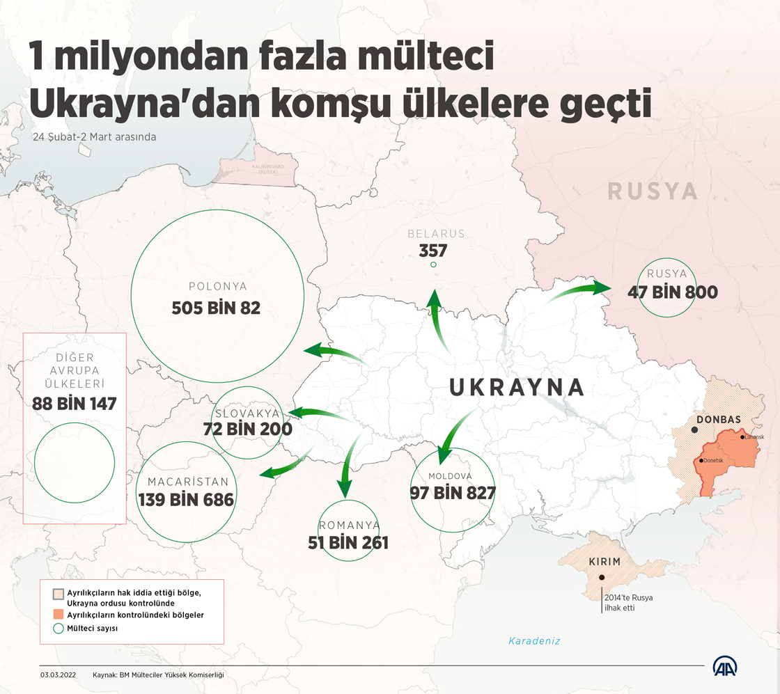 BM, 1 milyondan fazla mültecinin Ukrayna'dan komşu ülkelere geçtiğini duyurdu
