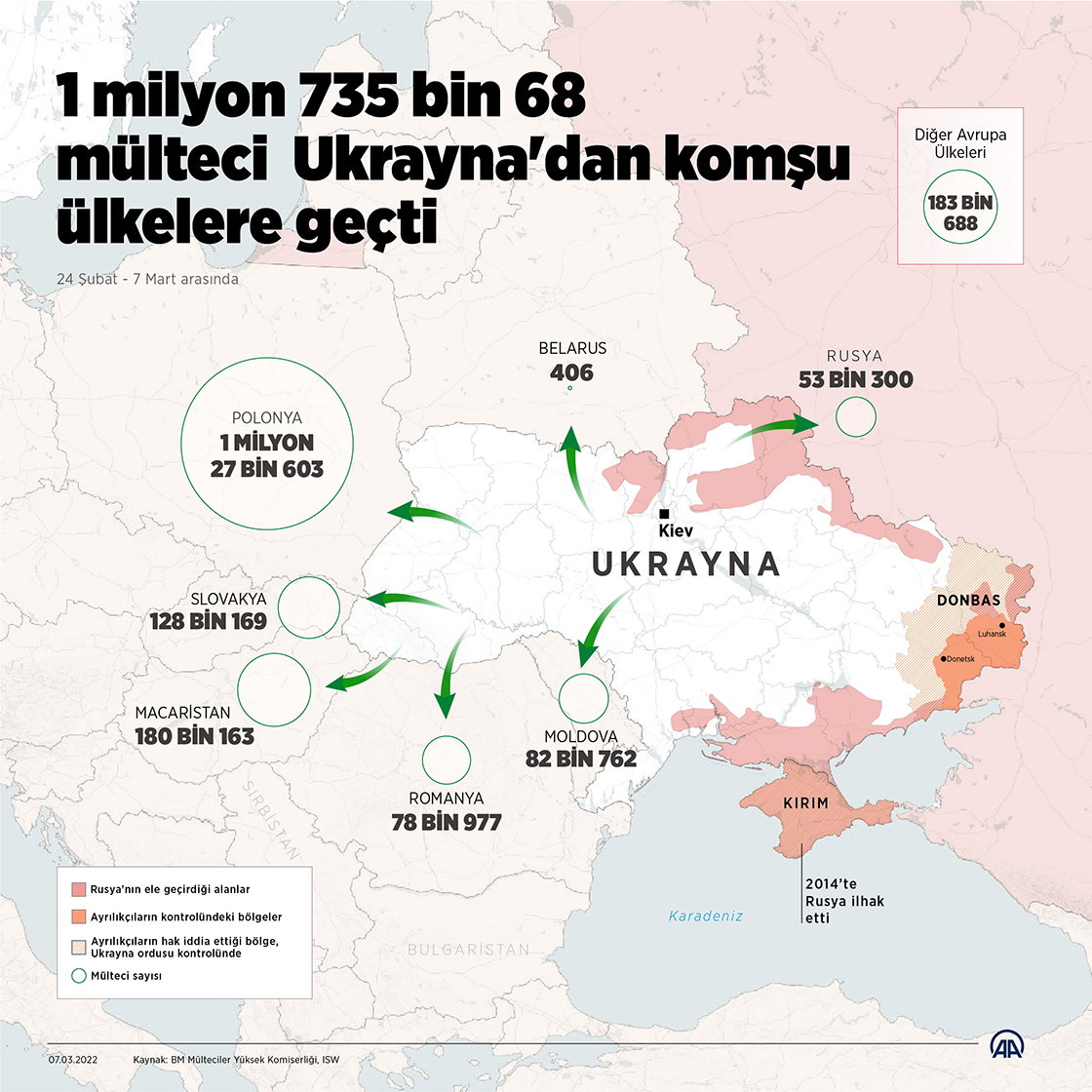 BM: 1 milyon 735 bin 68 mülteci Ukrayna'dan komşu ülkelere geçti