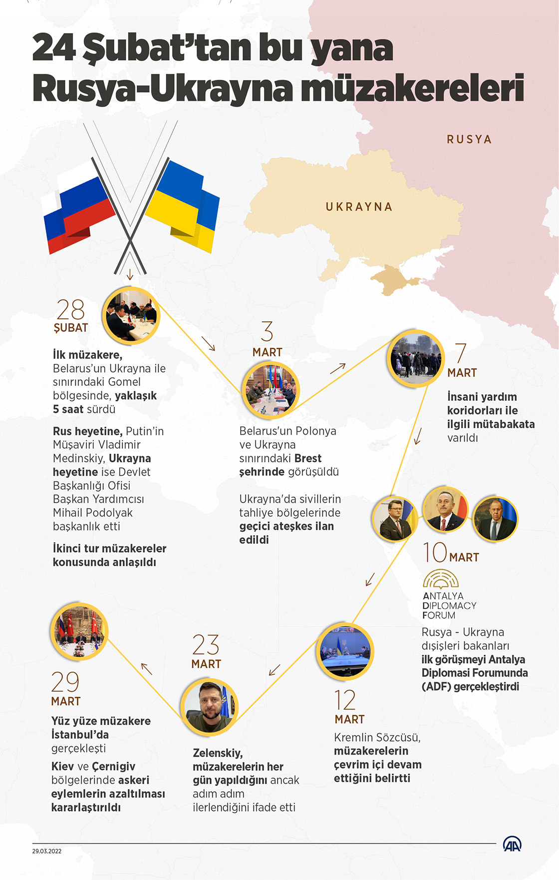 İstanbul görüşmelerine katılan Rusya Savunma Bakan Yardımcısı Fomin, Kiev ve Çernigiv yönlerinde askeri eylemlerini azaltmaya karar verdiklerini açıkladı. (Grafik: Muhammed Ali Yiğit/AA)