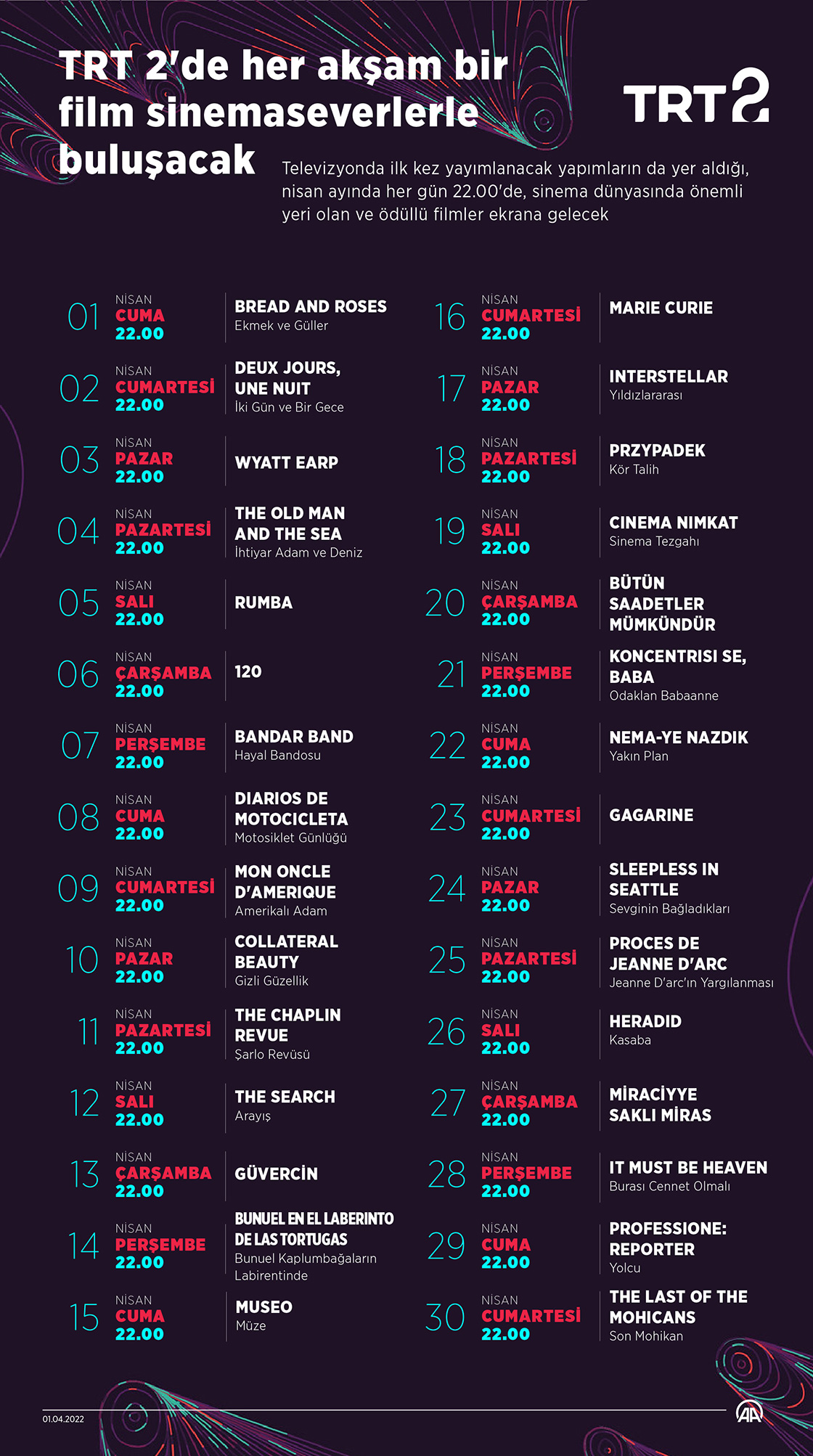 TRT 2'de her akşam bir film sinemaseverlerle buluşacak