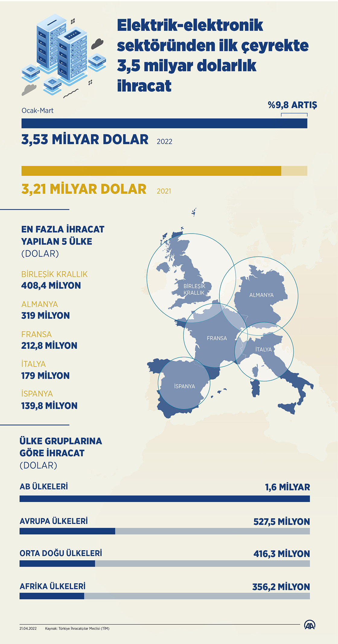 Elektrik-elektronik sektöründen ilk çeyrekte 3,5 milyar dolarlık ihracat