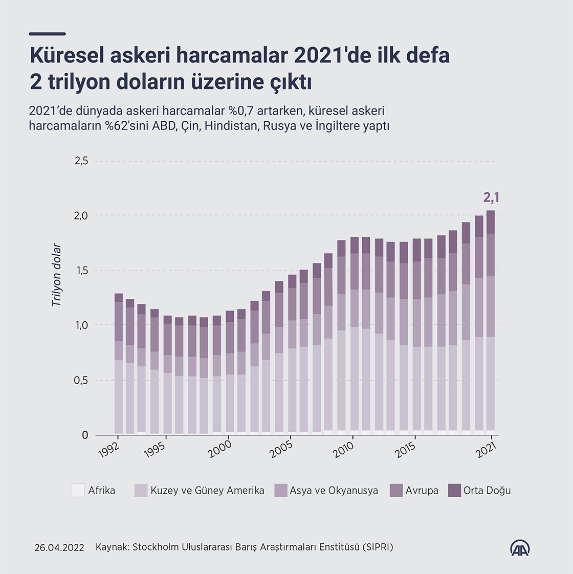 Küresel askeri harcamalar 2021'de ilk defa 2 trilyon doların üzerine çıktı
