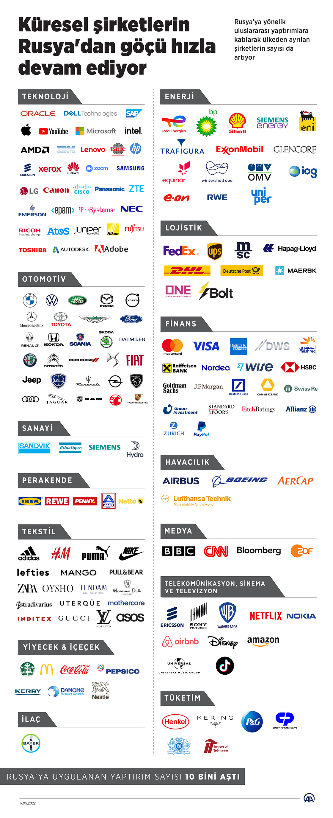 Rusya'ya yönelik uluslararası yaptırımlara katılarak ülkeden ayrılan şirketlerin sayısı da artıyor.