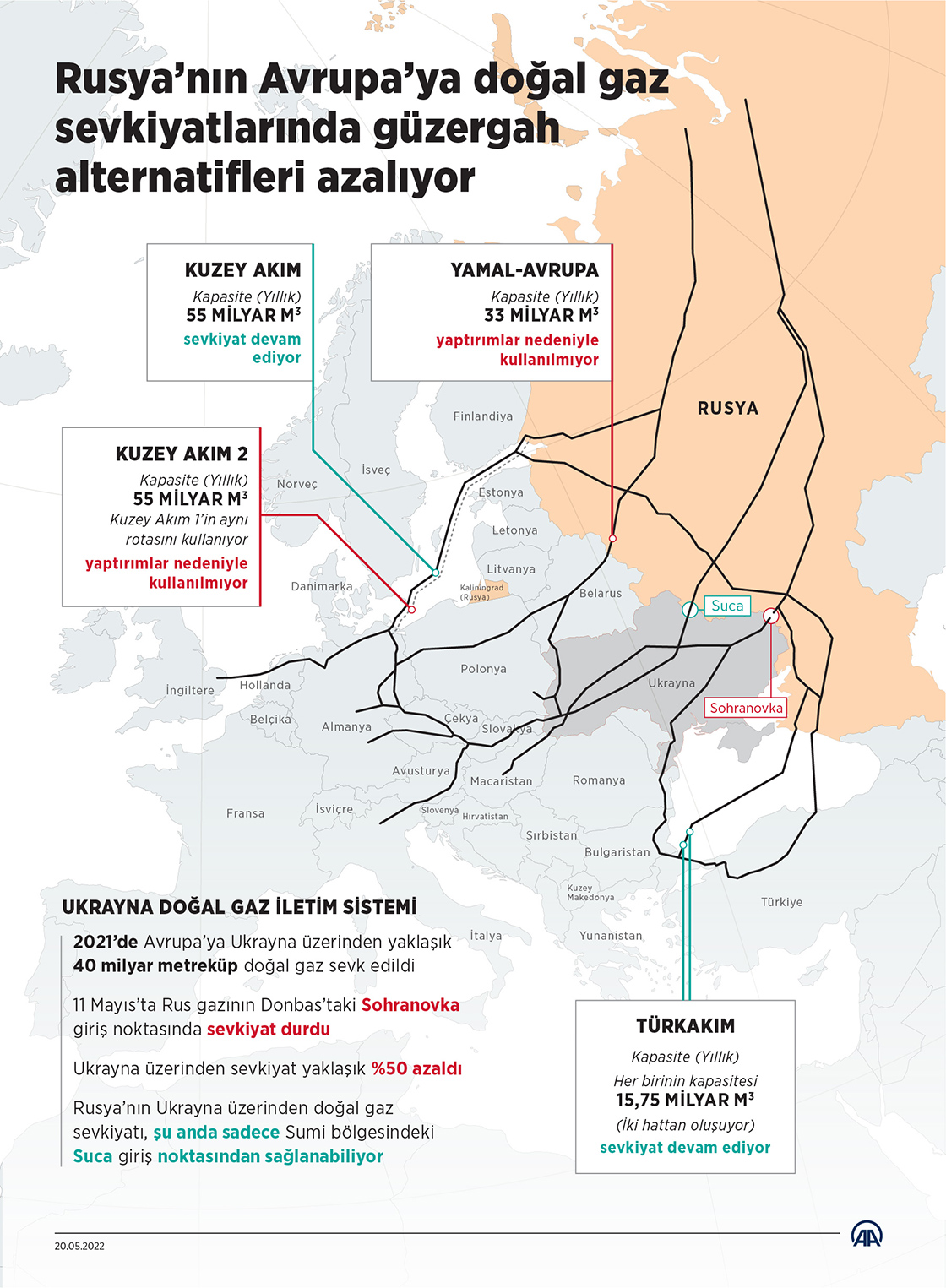 Rusya'nın Avrupa'ya doğal gaz sevkiyatında güzergah alternatifleri azalıyor