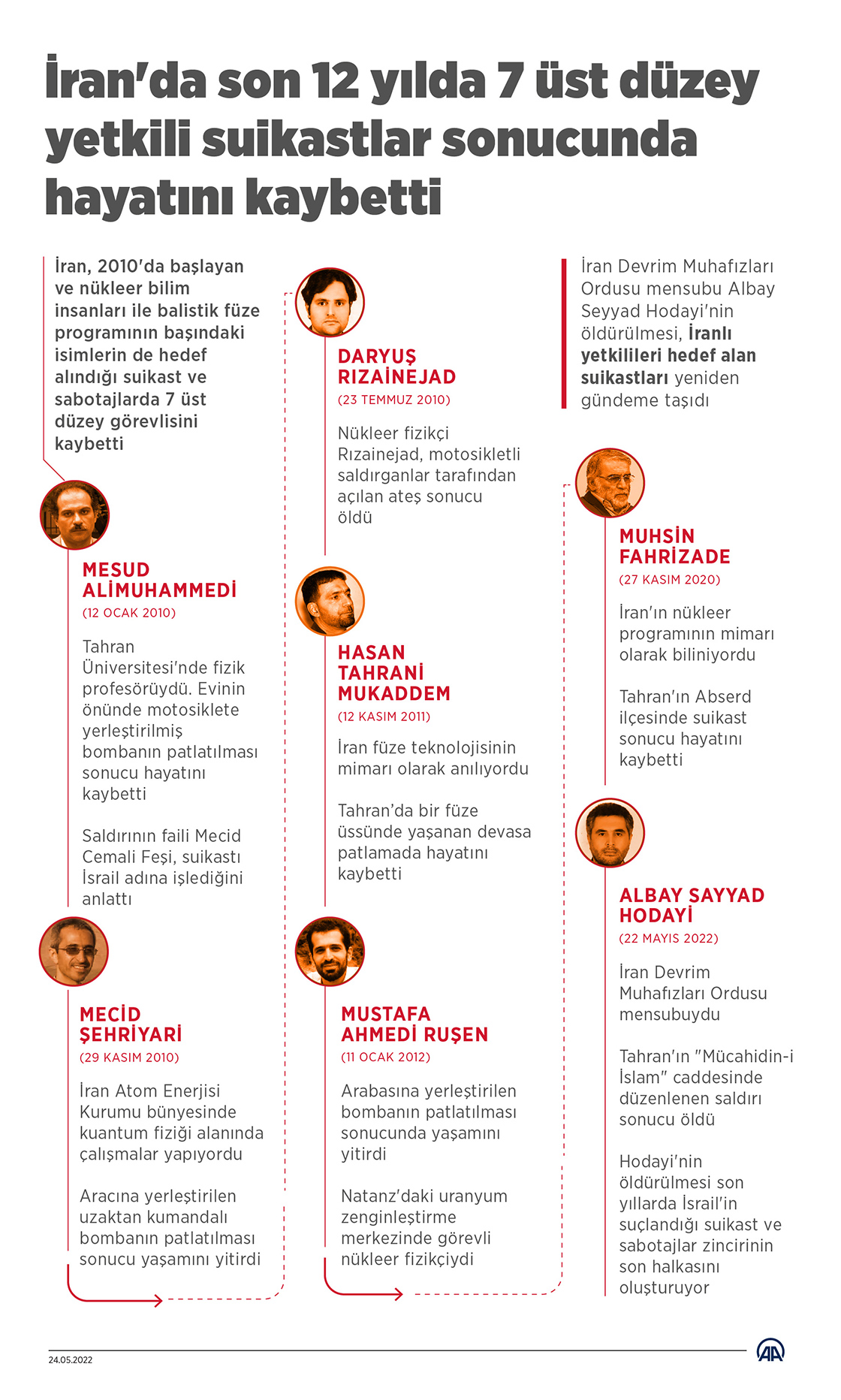 İran'da son 12 yılda 7 üst düzey yetkili suikastlar sonucunda hayatını kaybetti