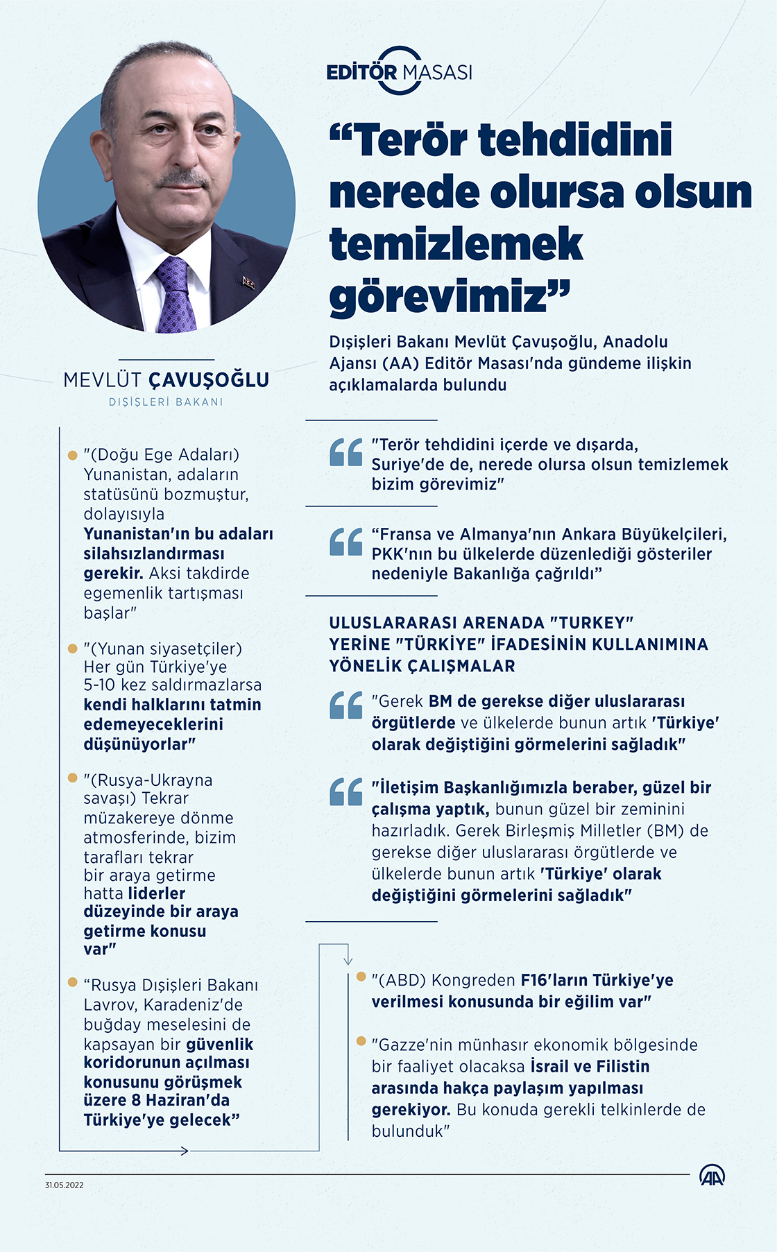 Dışişleri Bakanı Mevlüt Çavuşoğlu, Anadolu Ajansı (AA) Editör Masası'nda gündeme ilişkin açıklamalarda bulundu.