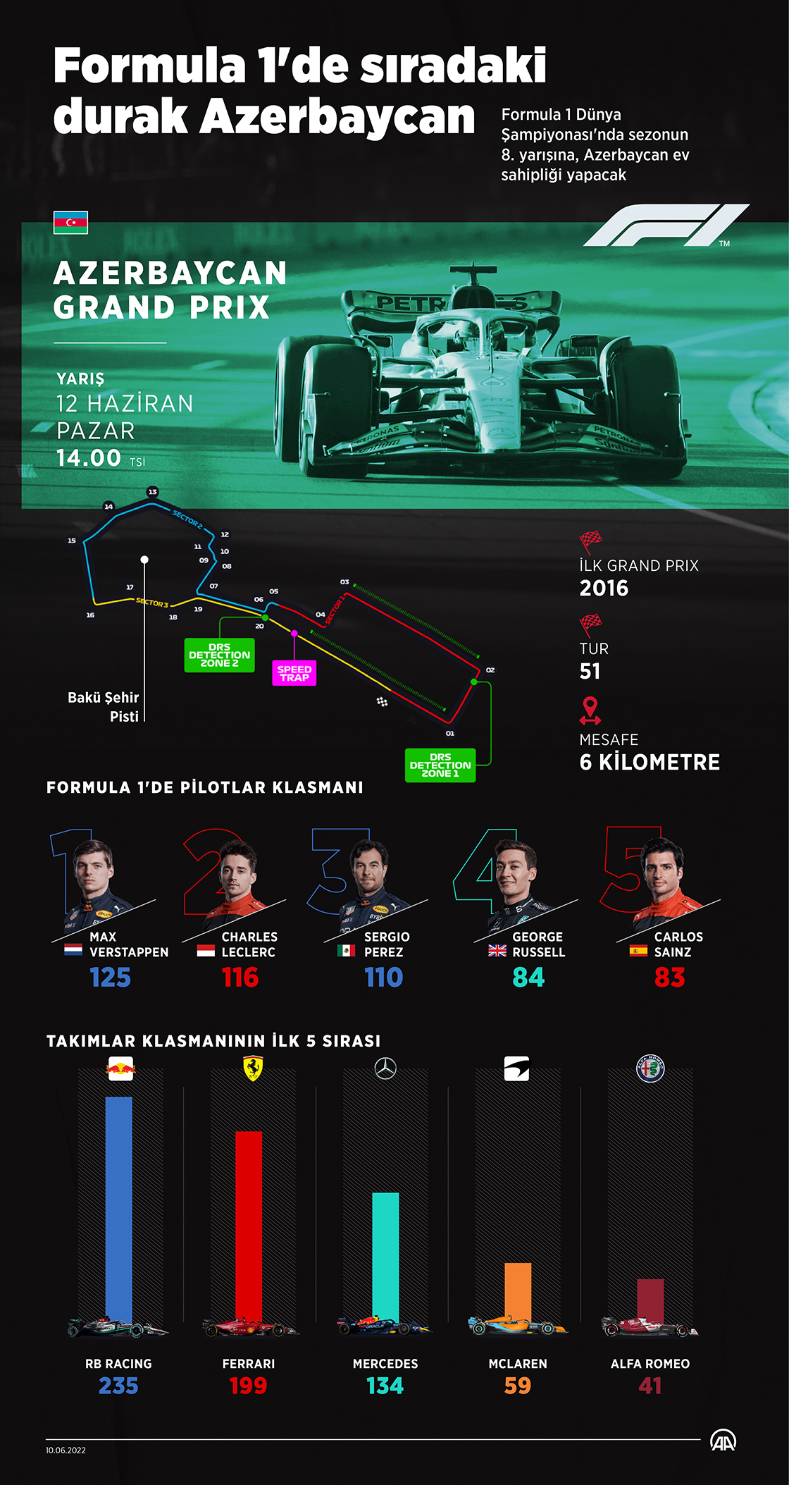 Formula 1 Dünya Şampiyonası'nda sezonun 8. yarışına, Azerbaycan ev sahipliği yapacak. (Grafik: Yasin Demirci/AA)