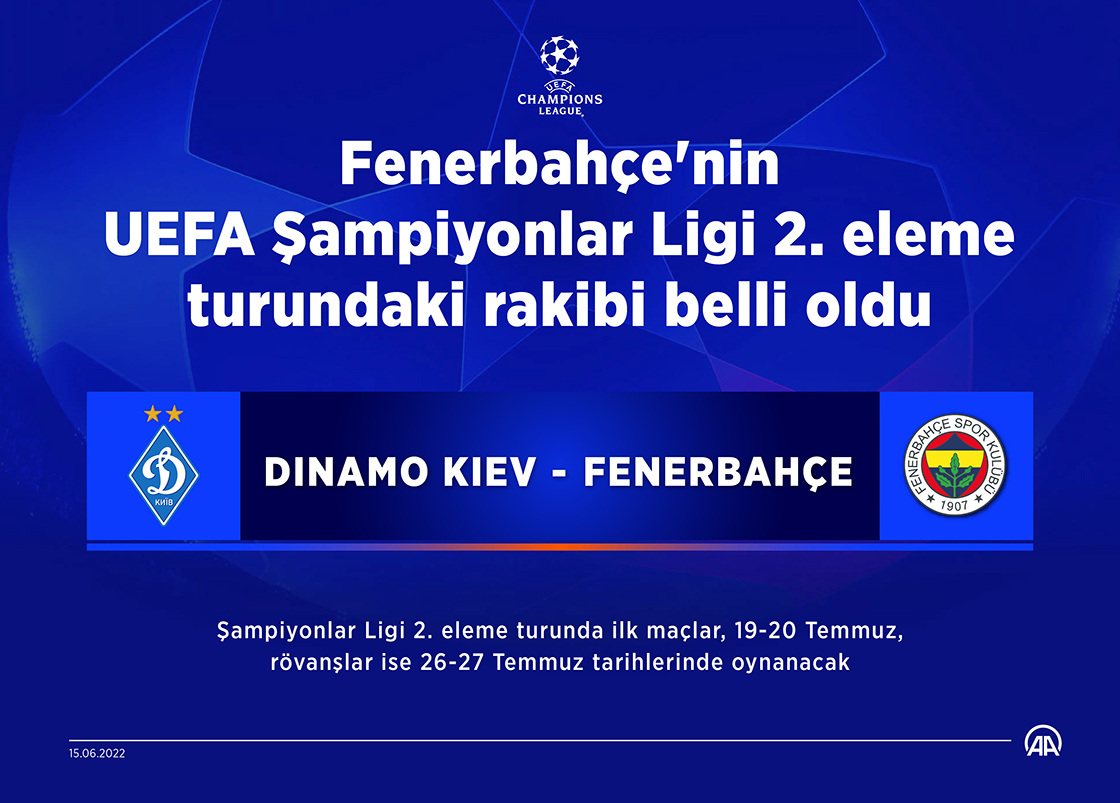 Fenerbahçe, UEFA Şampiyonlar Ligi 2. eleme turunda Ukrayna'nın Dinamo Kiev takımıyla karşılaşacak. (Grafik: Muhammed Ali Yiğit/AA)