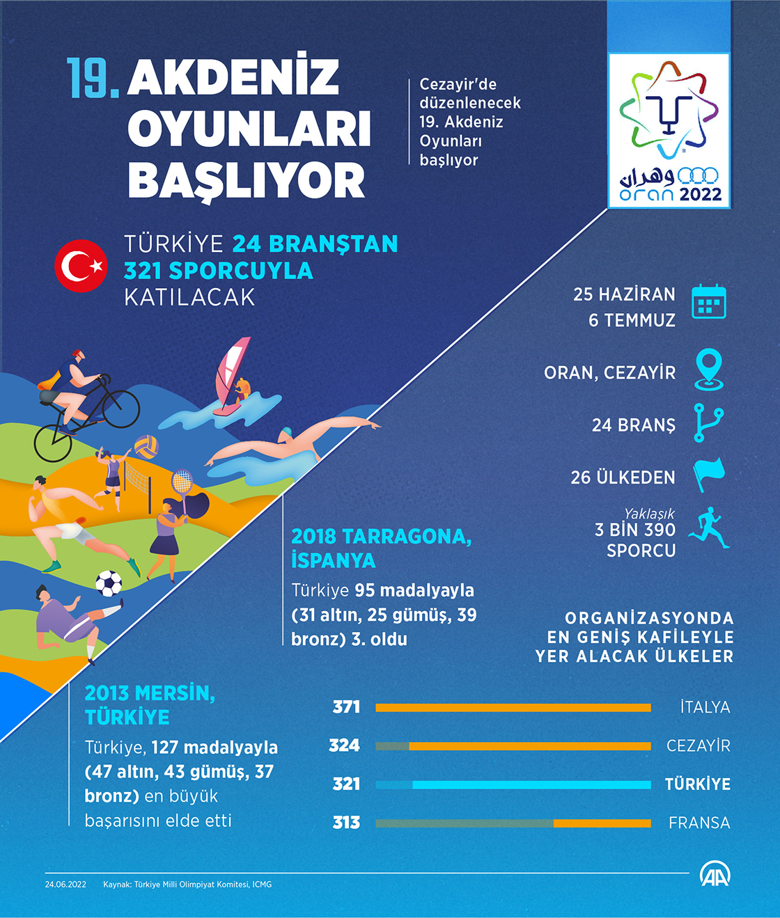 Oran kentinde 6 Temmuz'a kadar sürecek oyunların resmi açılış töreni Olimpik Stadyum'da yapılacak. (Grafik: Muhammed Ali Yiğit/AA)