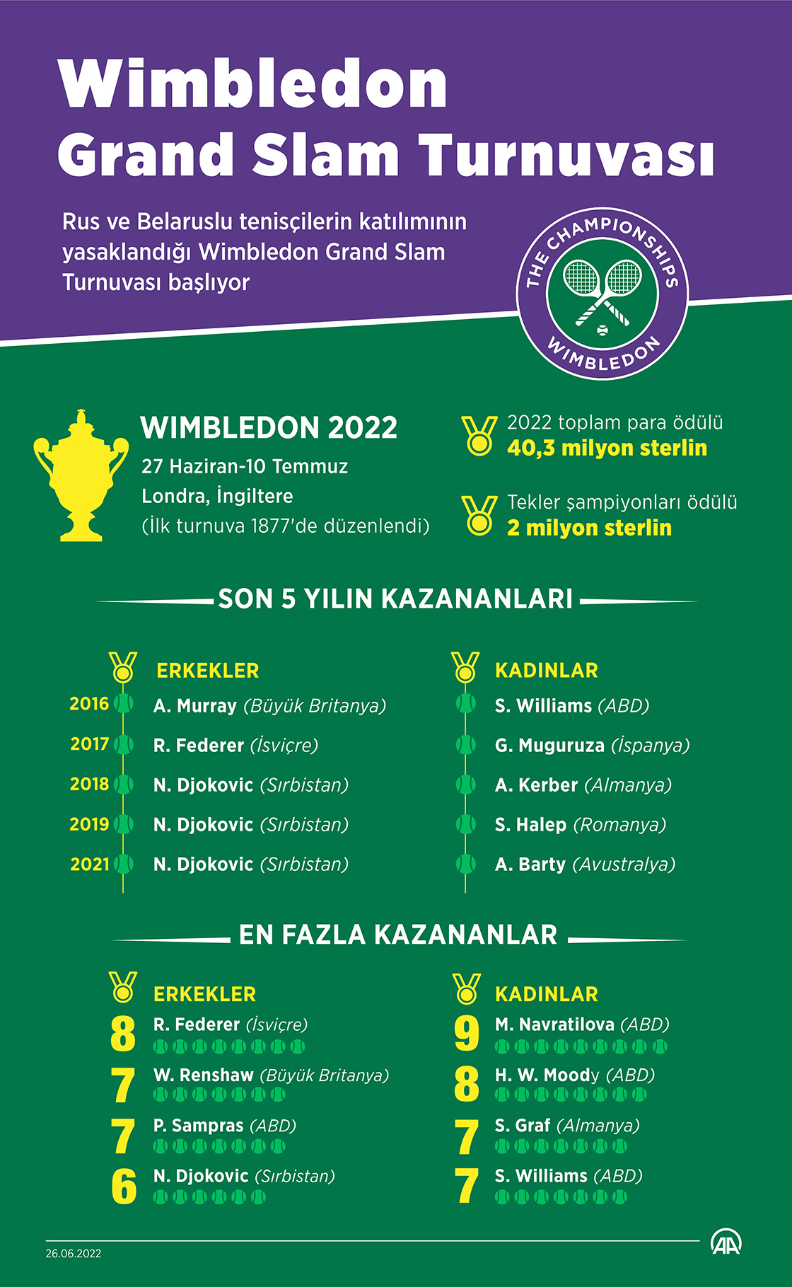 Tenis klasiği Wimbledon tartışmaların gölgesinde başlıyor