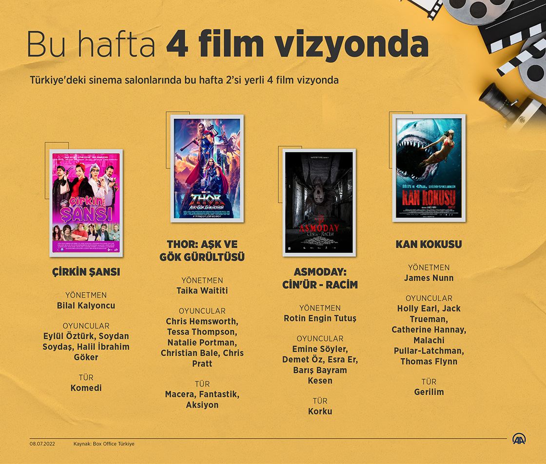 Sinema salonlarında bu hafta aksiyondan fantastiğe, komediden gerilime, ikisi yerli, 4 film sinemaseverlerle buluşuyor. (Grafik: Kemal Delikmen/AA)