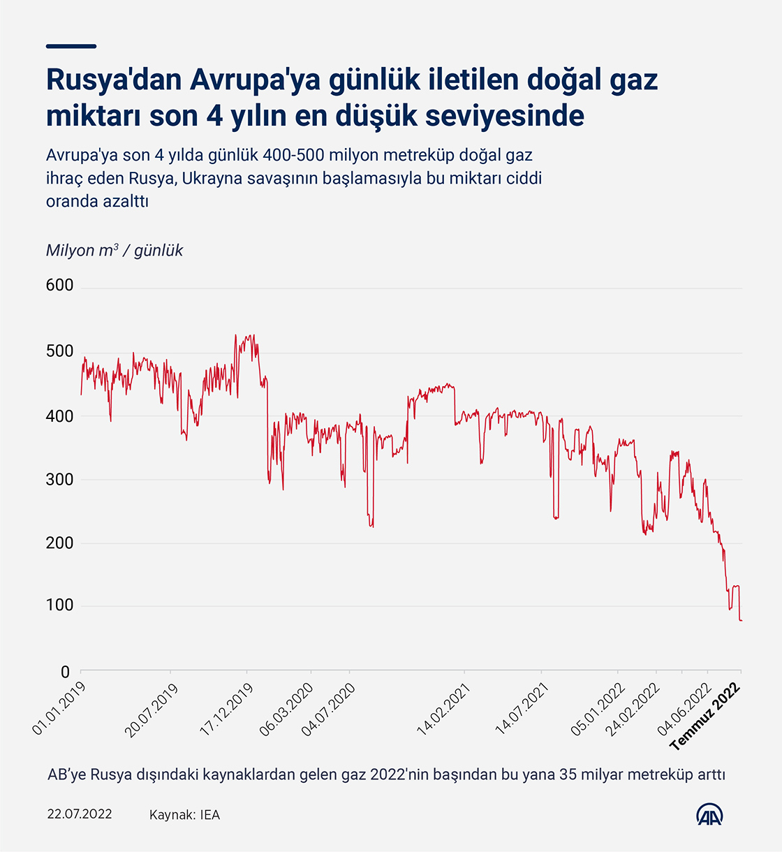 Avrupa'ya son 4 yılda günlük 400-500 milyon metreküp doğal gaz ihraç eden Rusya, Ukrayna savaşının başlamasıyla bu miktarı ciddi oranda azalttı. ( Yılmaz Yücel - Anadolu Ajansı )