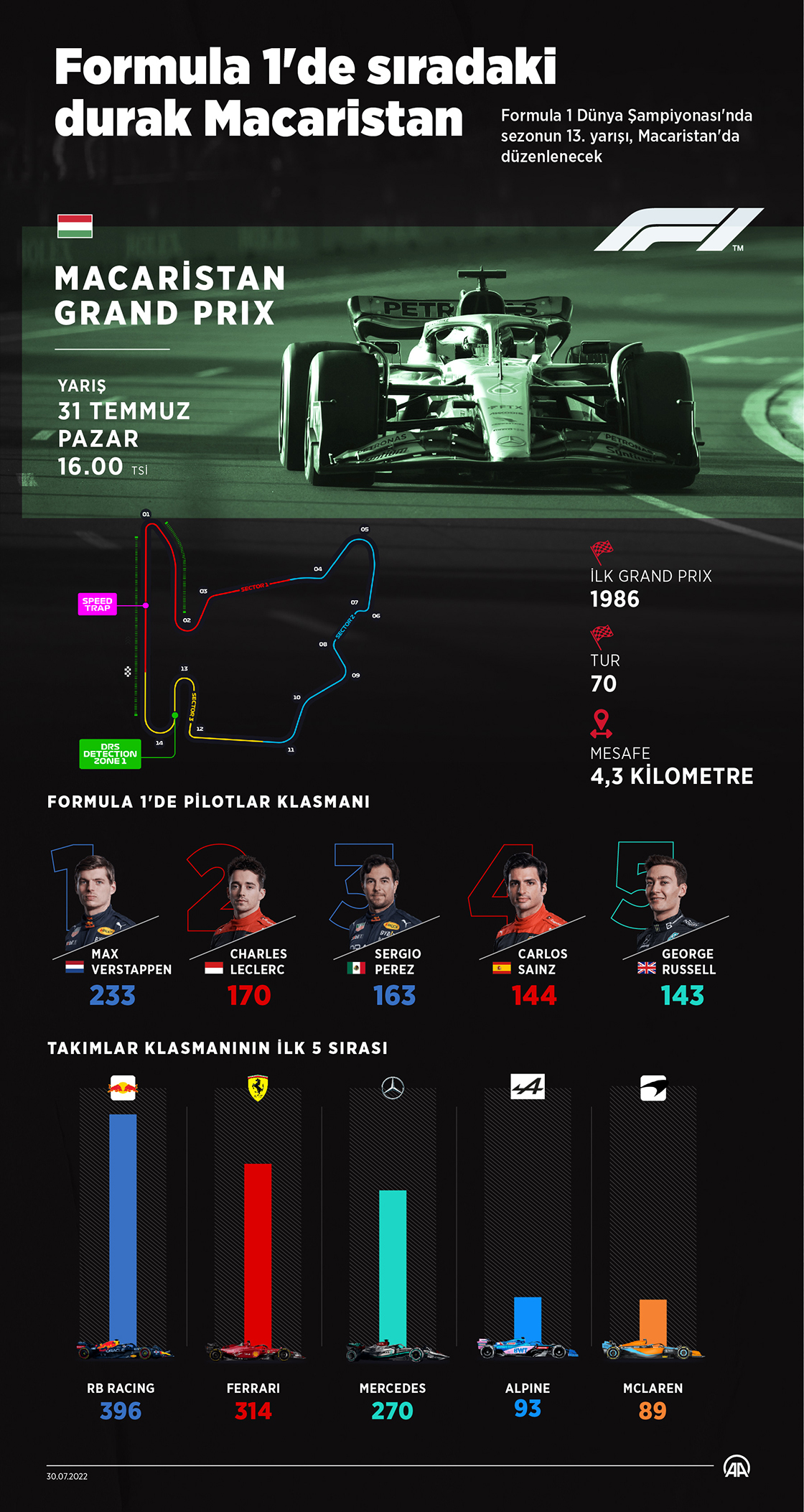 Başkent Budapeşte'deki 4,3 kilometrelik Hungaroring Pisti'nde 70 tur üzerinden gerçekleştirilecek Macaristan Grand Prix'sinde sıralama turları yarın TSİ 17.00, yarış ise 31 Temmuz Pazar günü TSİ 16.00'da başlayacak.