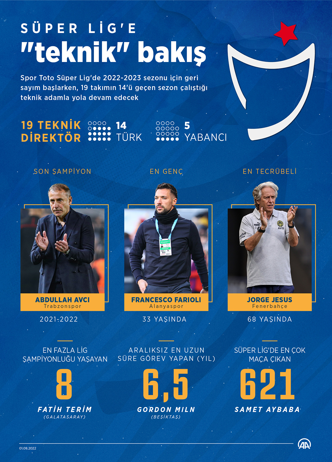 Spor Toto Süper Lig'de 2022-2023 sezonu için geri sayım başlarken, 19 takımın 14'ü geçen sezon çalıştığı teknik adamla yola devam edecek.