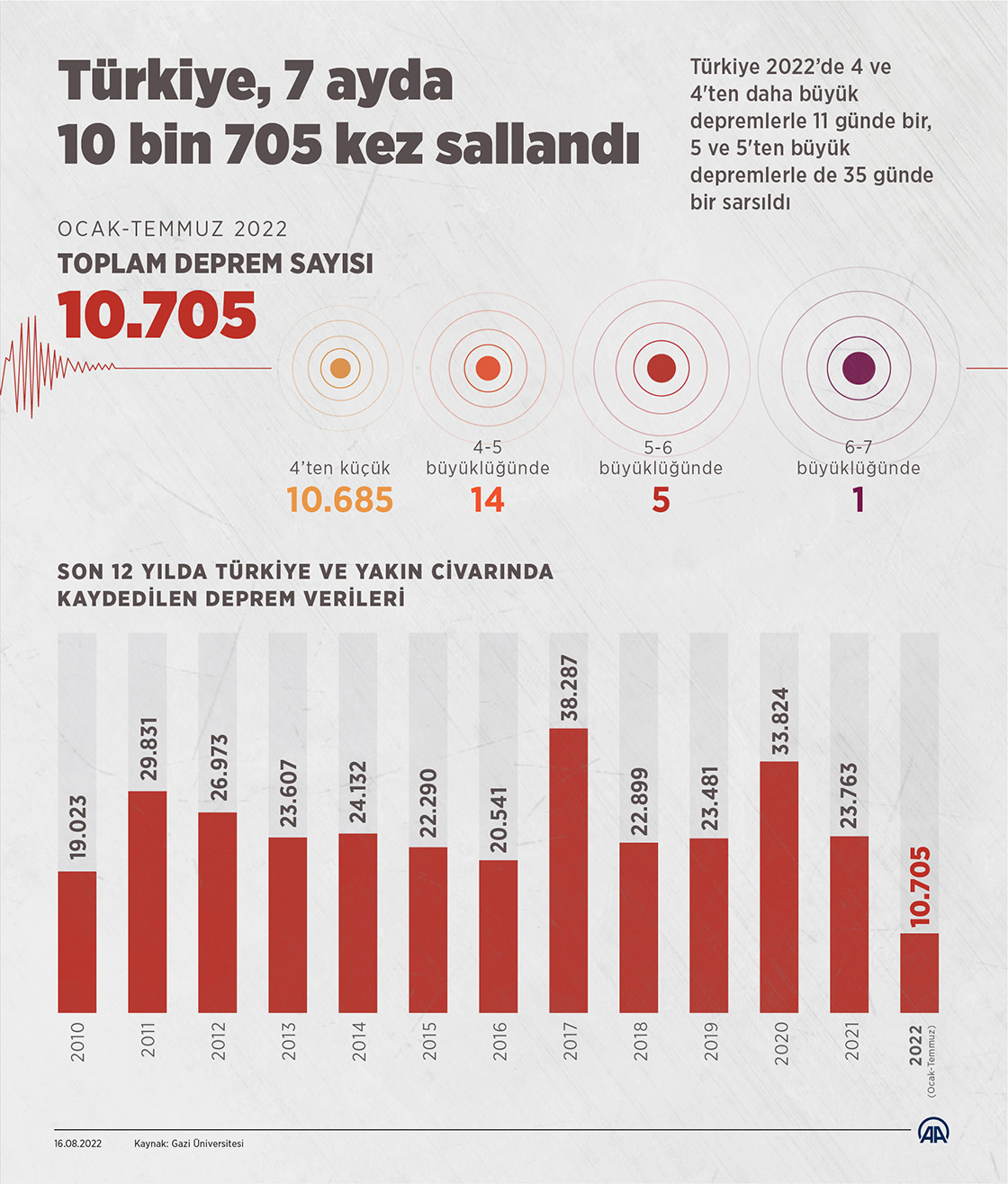 Türkiye, 7 ayda 10 bin 705 kez sallandı
