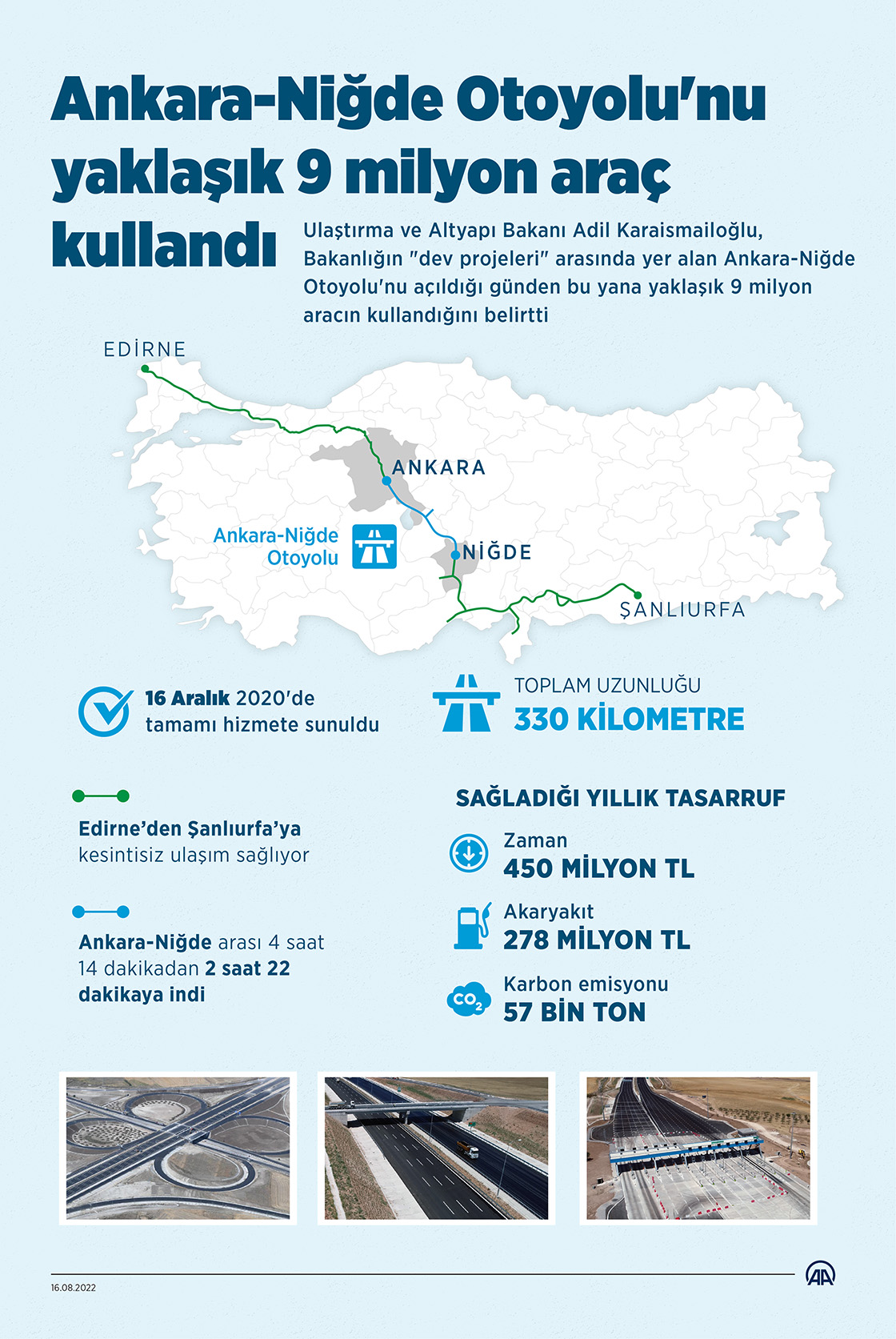 Ankara-Niğde Otoyolu'nu yaklaşık 9 milyon araç kullandı