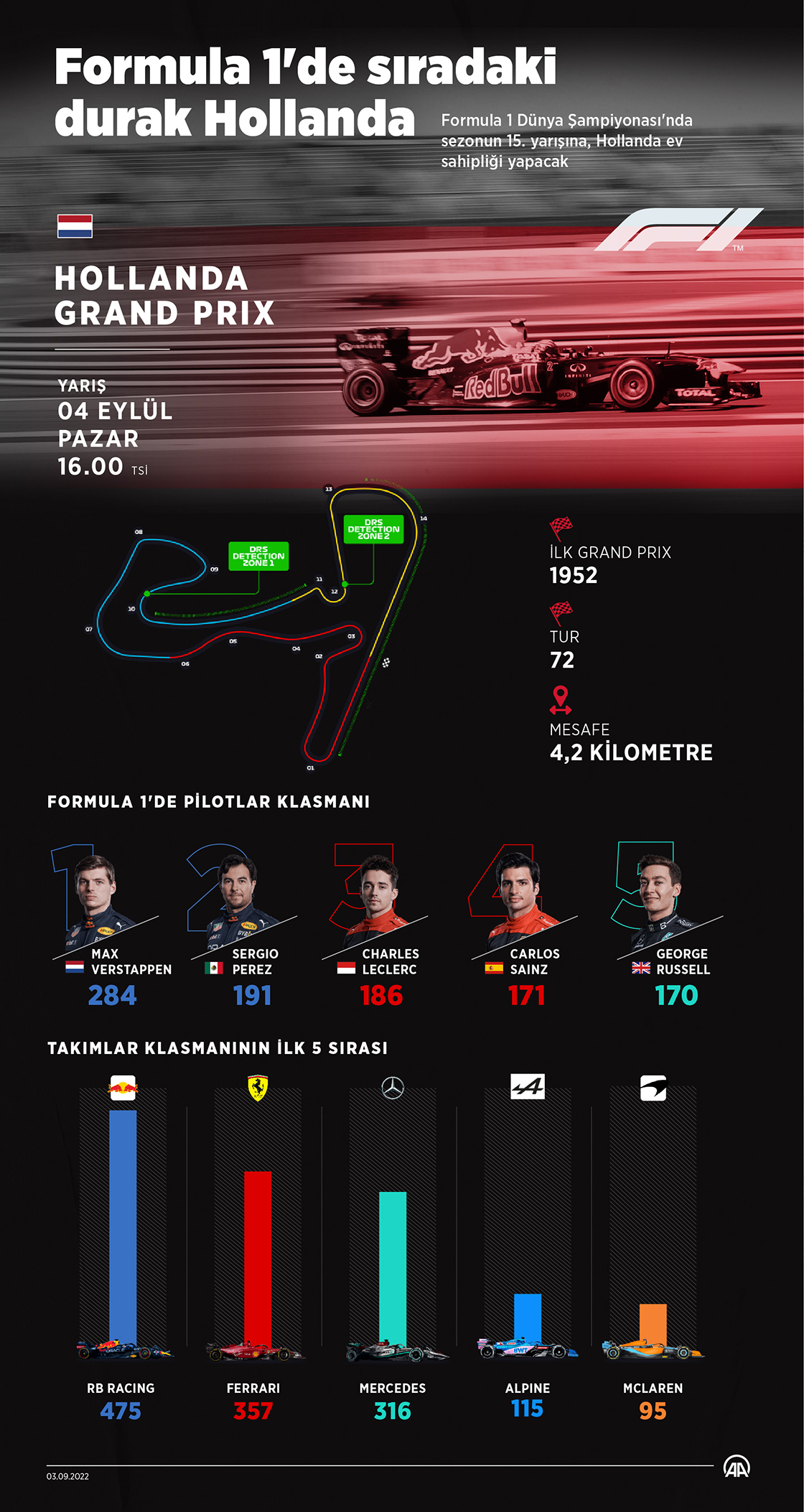 Formula 1 Dünya Şampiyonası'nda sezonun 15. yarışına Hollanda ev sahipliği yapacak.