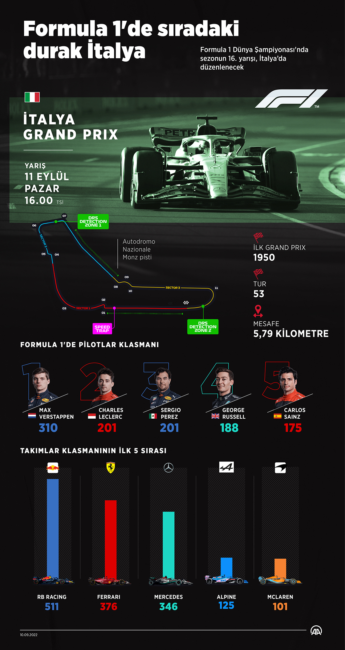 Formula 1 Dünya Şampiyonası'nda sezonun 16. yarışına İtalya ev sahipliği yapacak.