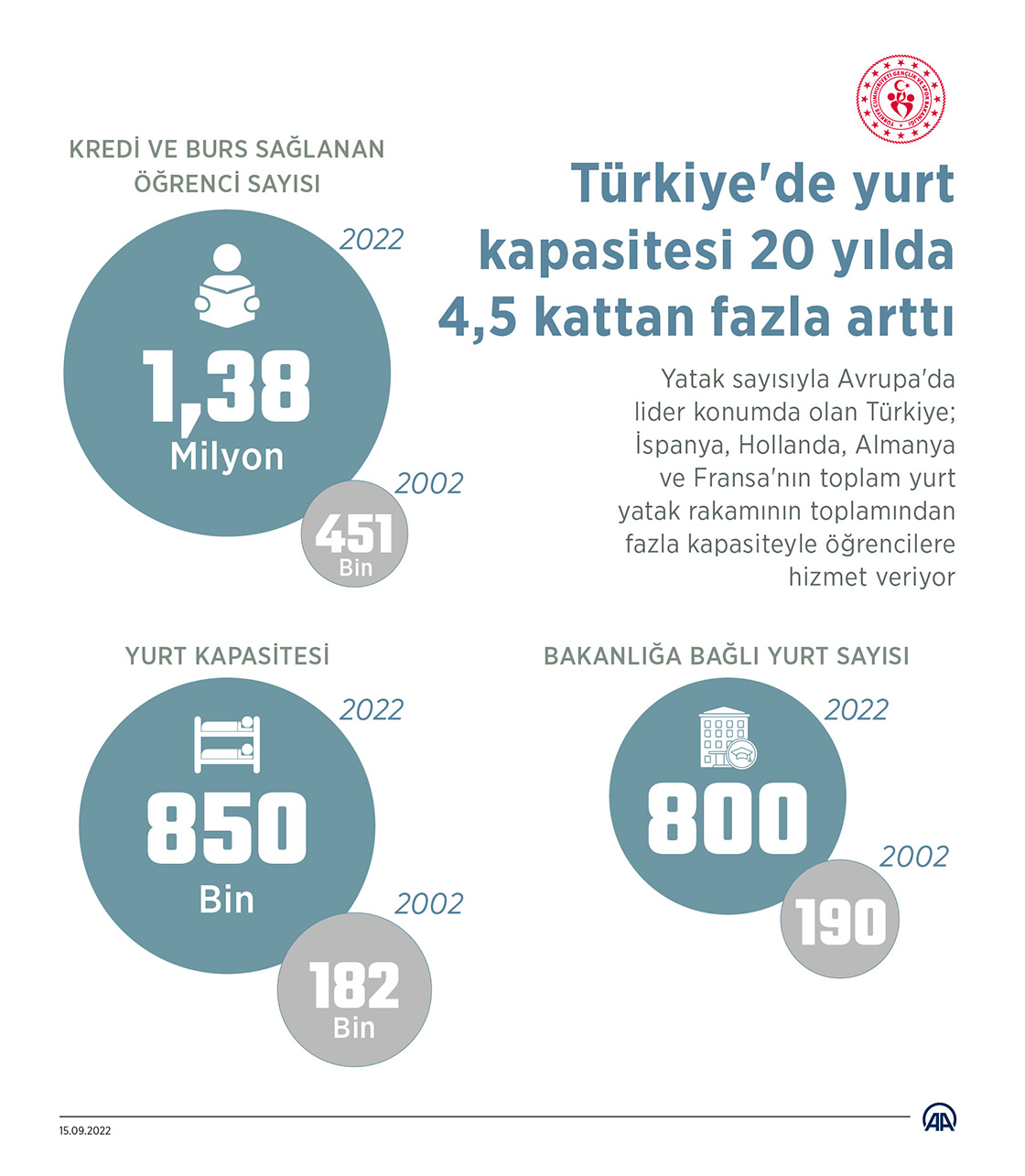 Türkiye'de yurt kapasitesi 20 yılda 4,5 kattan fazla arttı