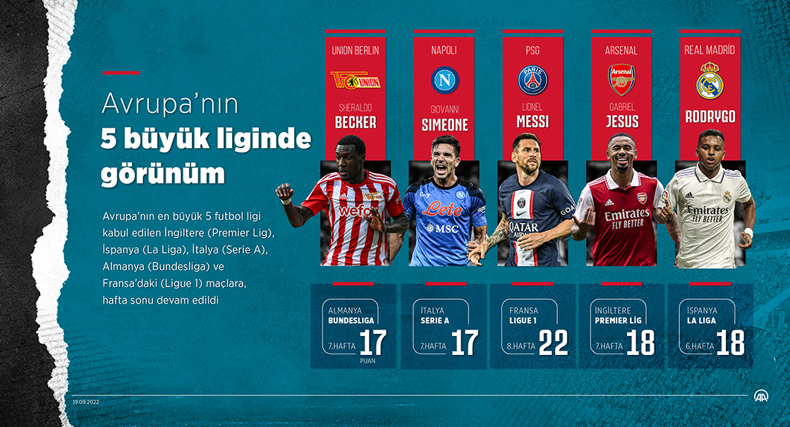 Avrupa'nın en büyük 5 futbol ligi kabul edilen İngiltere (Premier Lig), İspanya (La Liga), İtalya (Serie A), Almanya (Bundesliga) ve Fransa'daki (Ligue 1) maçlara, hafta sonu devam edildi. ( Kemal Delikmen - Anadolu Ajansı )
