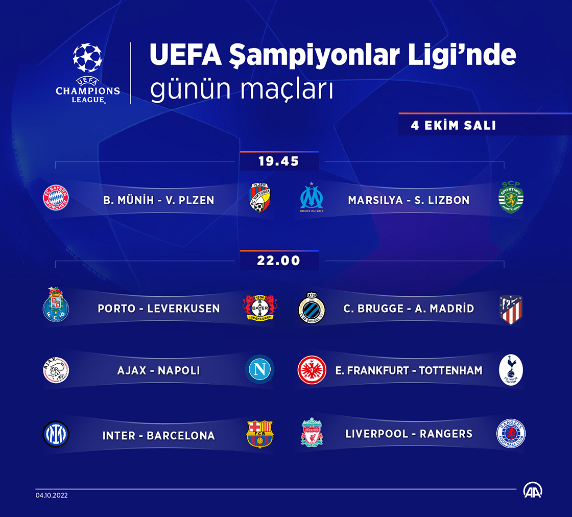 UEFA Şampiyonlar Ligi'nde gruplarda 2022-23 sezonu 3. hafta maçları bugün ve çarşamba günü oynanacak.(Grafik: Kemal Delikmen/AA)