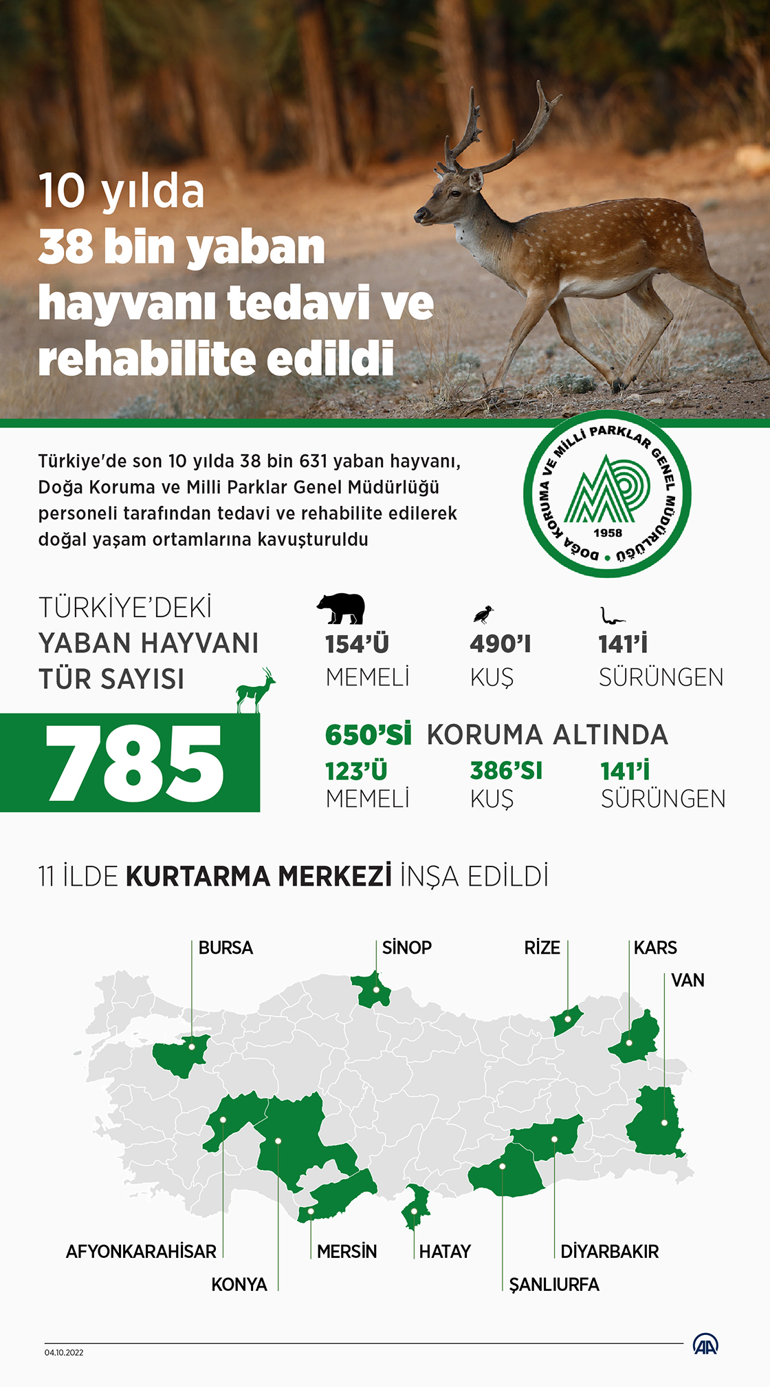 10 yılda 38 bin yaban hayvanı tedavi ve rehabilite edildi