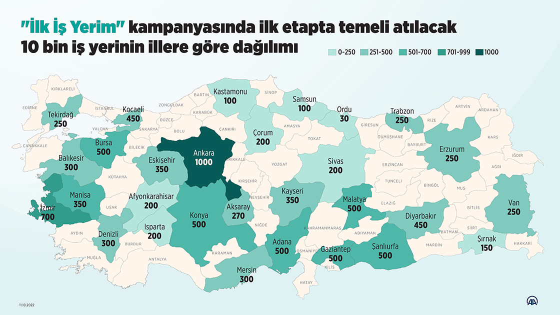 "İlk İş Yerim" kampanyasında ilk etapta temeli atılacak 10 bin iş yerinin illere göre dağılımı