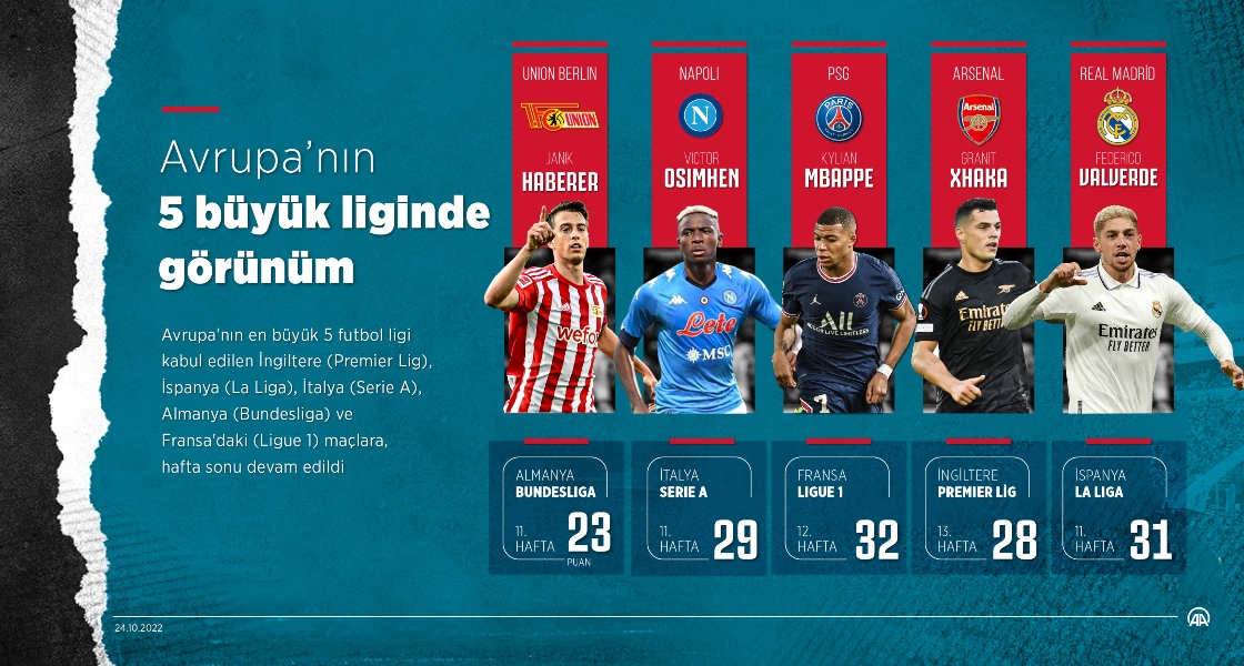 Avrupa'nın en büyük 5 futbol ligi kabul edilen İngiltere (Premier Lig), İspanya (La Liga), İtalya (Serie A), Almanya (Bundesliga) ve Fransa'daki (Ligue 1) maçlara, hafta sonu devam edildi. (Kemal Delikmen)