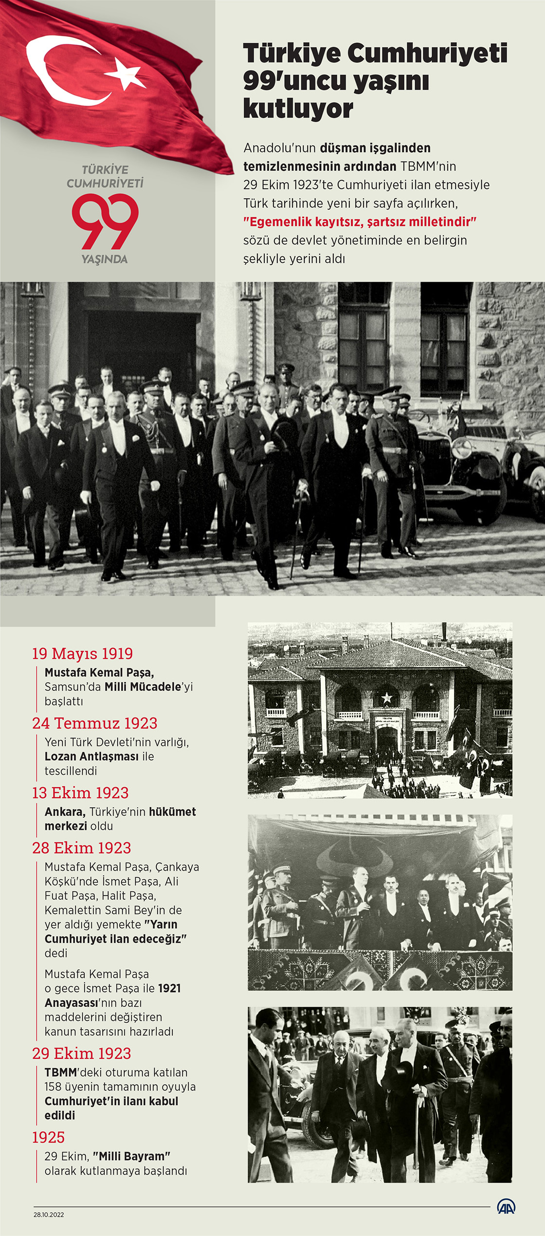 Türkiye Cumhuriyeti 99'uncu yaşını kutluyor