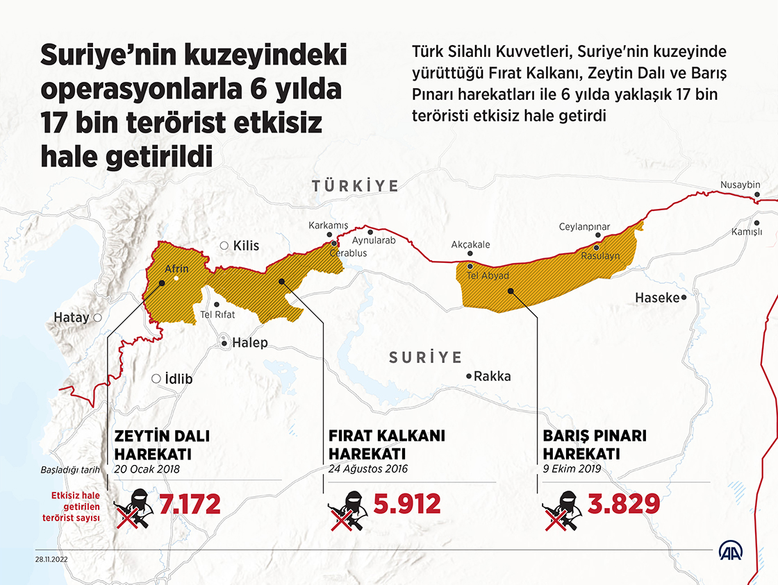 Suriye'nin kuzeyindeki operasyonlarla 6 yılda yaklaşık 17 bin terörist etkisiz hale getirildi