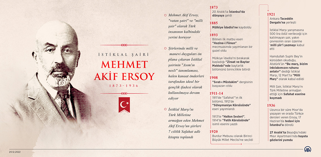 İstiklal Marşı'nın yazarı Mehmet Akif Ersoy vefatının 86'ncı yılında anılıyor. (Grafik: Kemal Delikmen/AA)