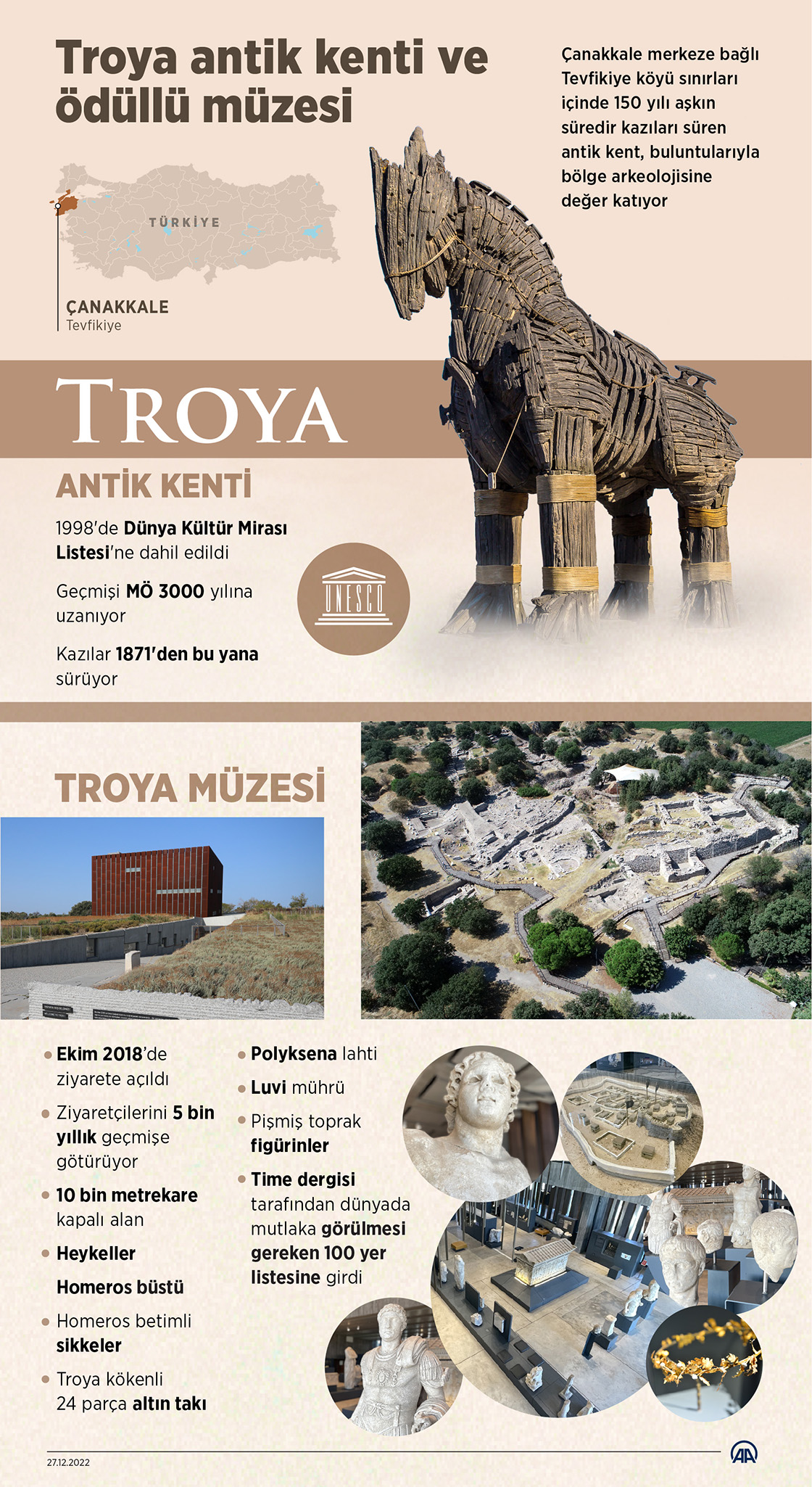 Çanakkale merkeze bağlı Tevfikiye köyü sınırları içinde 150 yılı aşkın süredir kazıları süren antik kent, buluntularıyla bölge arkeolojisine değer katıyor. (Grafik: Elmurod Usubaliev/AA)