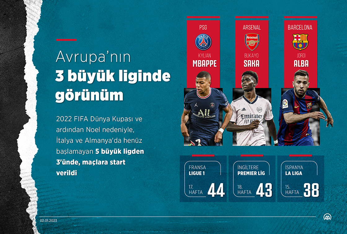 2022 FIFA Dünya Kupası ve ardından Noel nedeniyle, İtalya ve Almanya'da henüz başlamayan 5 büyük ligden 3'ünde, maçlara start verildi. (Grafik: Kemal Delikmen/AA)