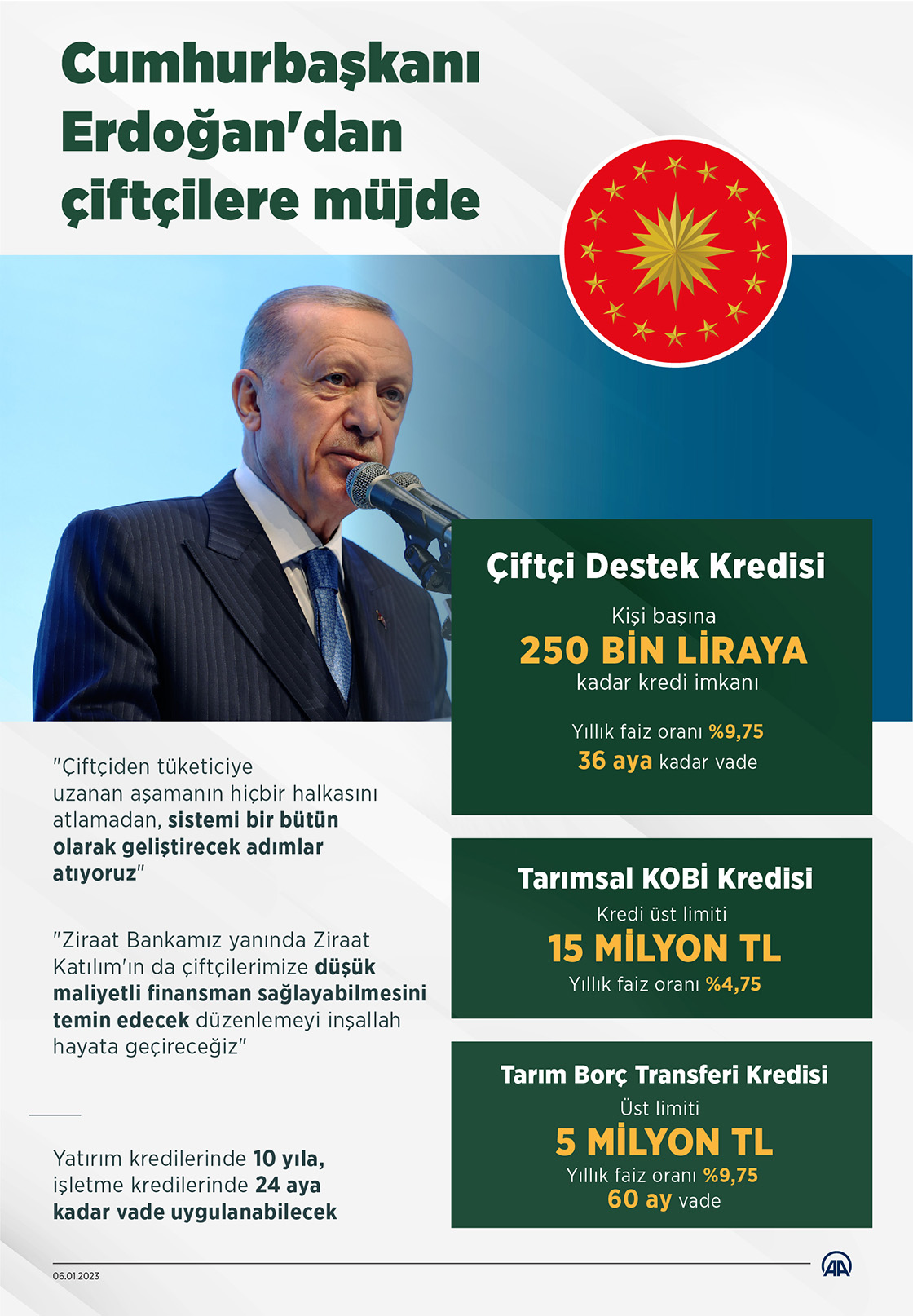 Cumhurbaşkanı Erdoğan'dan çiftçilere müjde