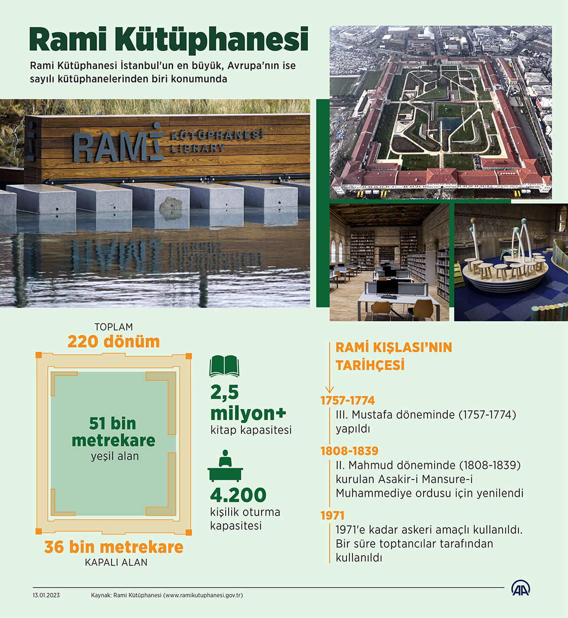 Rami Kışlası'ndan restore edilerek kütüphaneye dönüştürülen, 220 dönümlük alan içinde, 51 bin metrekarelik peyzaj alanına sahip Rami Kütüphanesi, Cumhurbaşkanı Recep Tayyip Erdoğan'ın katılımıyla açıldı.