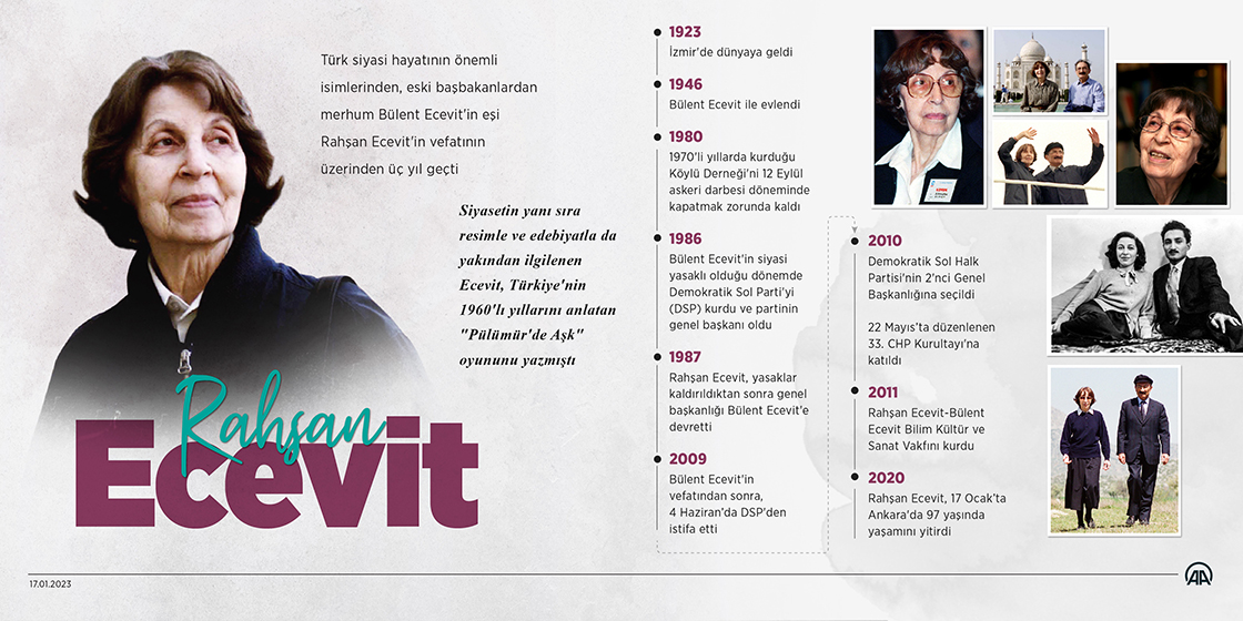 Türk siyasi hayatının önemli isimlerinden, eski başbakanlardan merhum Bülent Ecevit'in eşi Rahşan Ecevit'in vefatının üzerinden 3 yıl geçti.