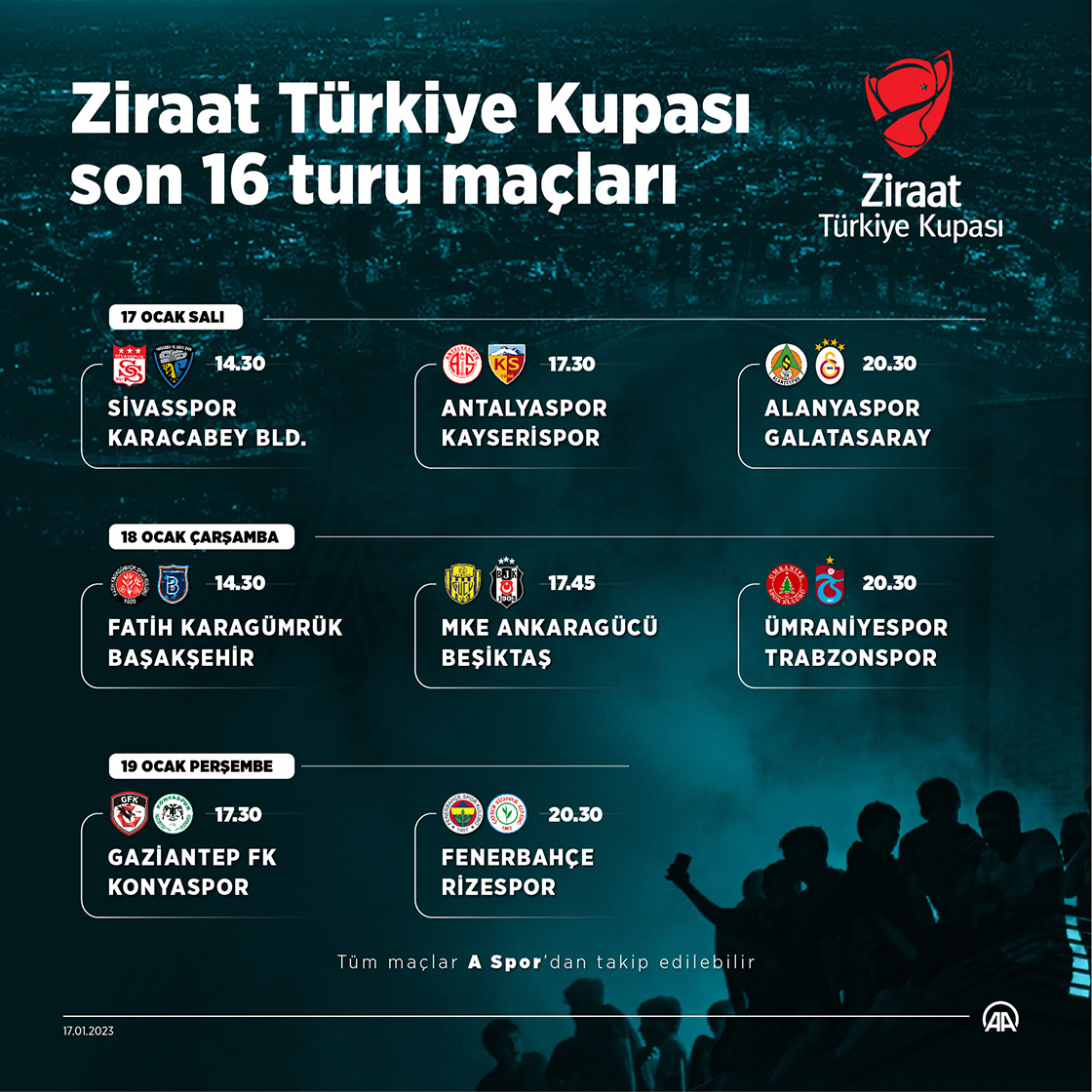 Futbolda Ziraat Türkiye Kupası Son 16 Turu eşleşmeleri belli oldu.