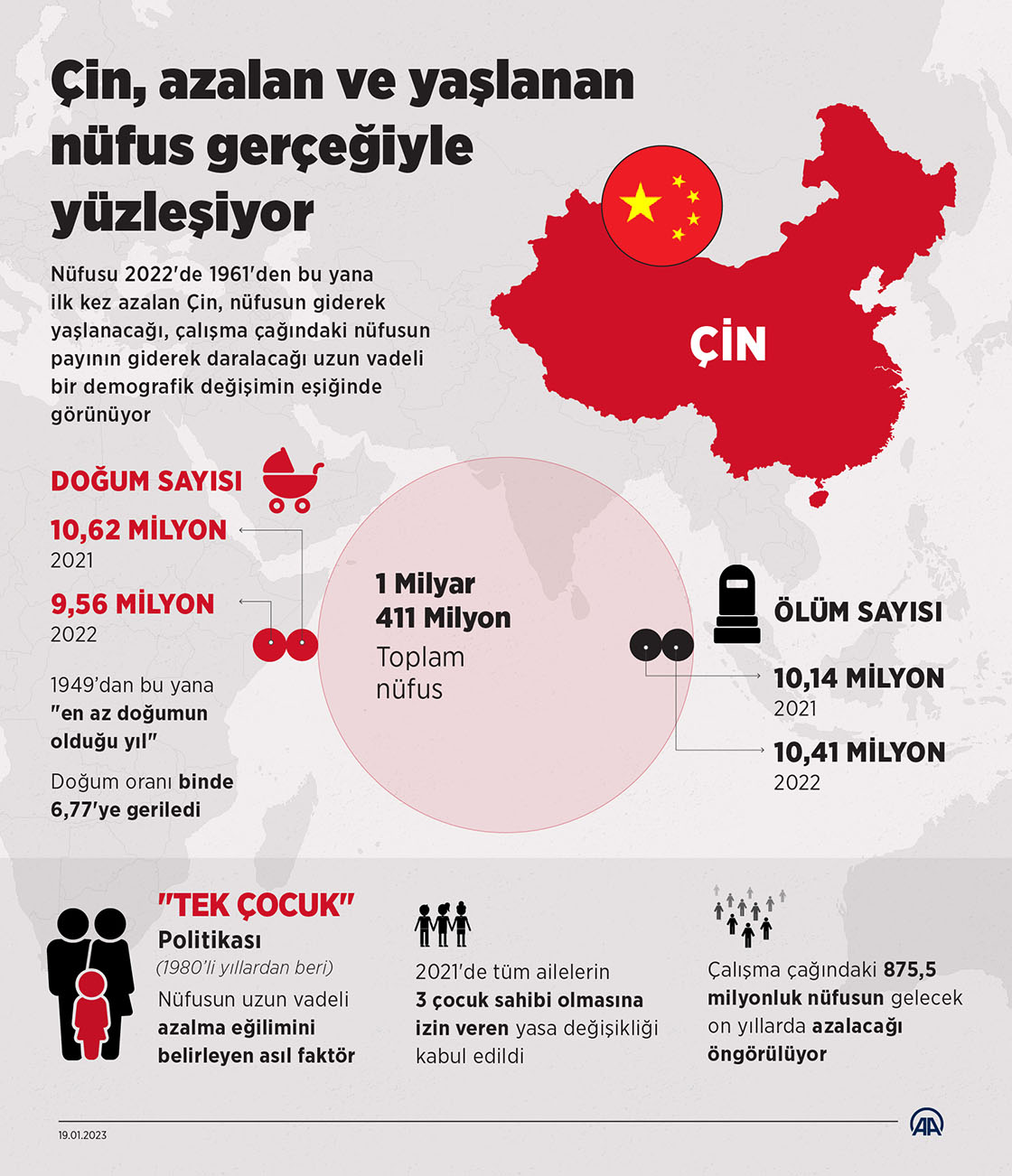 Nüfusu 2022'de 1961'den bu yana ilk kez azalan Çin, nüfusun giderek yaşlanacağı, çalışma çağındaki nüfusun payının giderek daralacağı uzun vadeli bir demografik değişimin eşiğinde görünüyor.