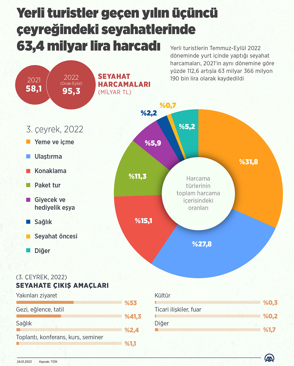 Yerli turistler geçen yılın üçüncü çeyreğindeki seyahatlerinde 63,4 milyar lira harcadı