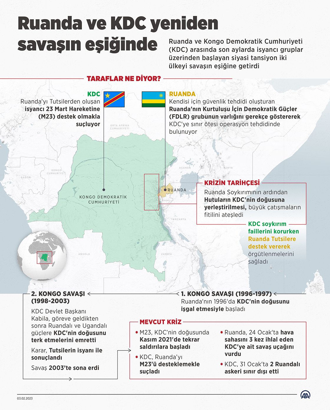Ruanda ve Kongo Demokratik Cumhuriyeti (KDC) arasında son aylarda isyancı gruplar üzerinden başlayan siyasi tansiyon iki ülkeyi savaşın eşiğine getirdi.
