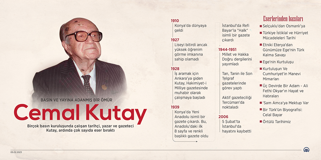Birçok basın kuruluşunda çalışan tarihçi, yazar ve gazeteci Kutay, ardında çok sayıda eser bıraktı. (Grafik: Omar Zaghloul/AA)