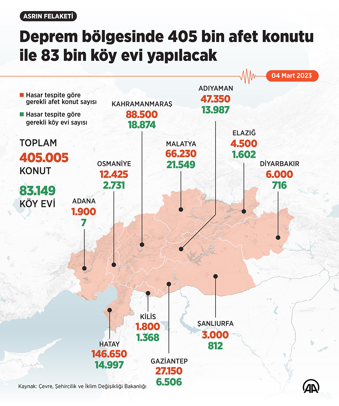 Deprem bölgesine 405 bin afet konutu ile 83 bin köy evi yapılacak