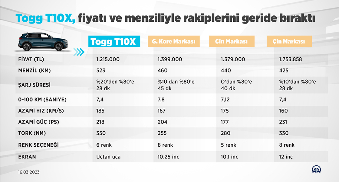 Togg'un ilk modeli T10X, C-SUV segmentindeki diğer elektrikli otomobilleri menzil, şarj ve fiyat avantajı konusunda geride bırakıyor.