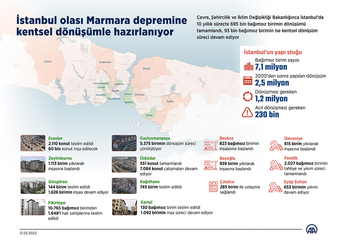 İstanbul’un ilçelerinde yapılan kentsel dönüşüm çalışmaları