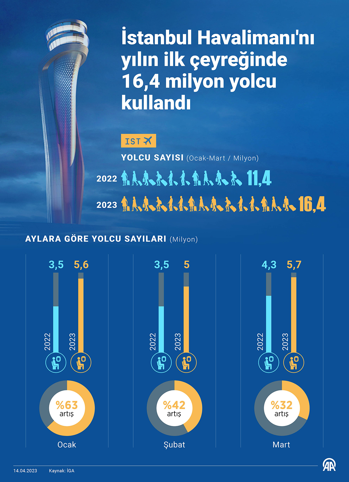 İstanbul Havalimanı bu yılın ilk üç ayında 16 milyon 403 bin yolcu sayısına ulaştı. (Grafik: Yasin Demirci/AA)