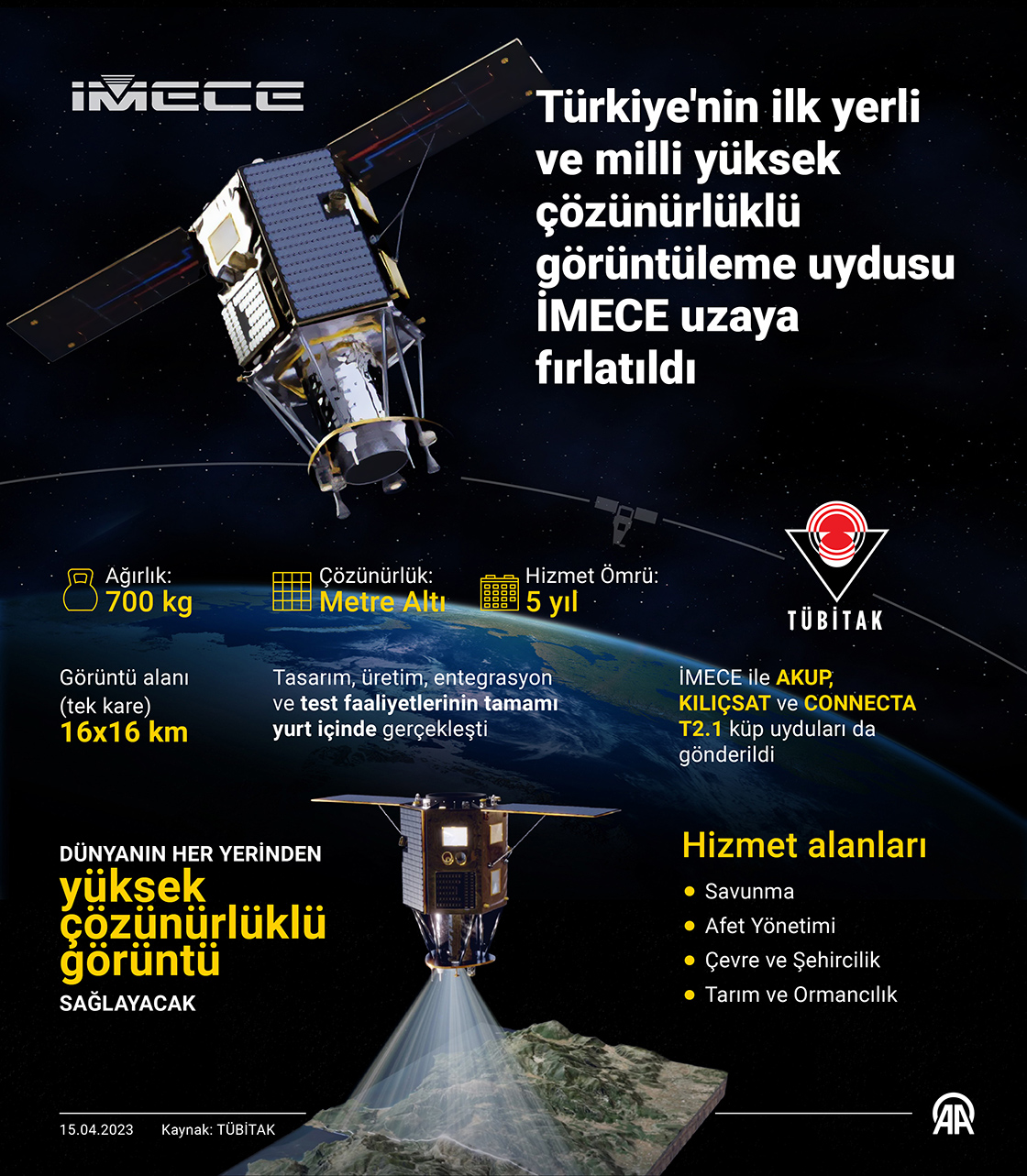 Türkiye'nin ilk yerli ve milli yüksek çözünürlüklü görüntüleme uydusu İMECE uzaya fırlatıldı