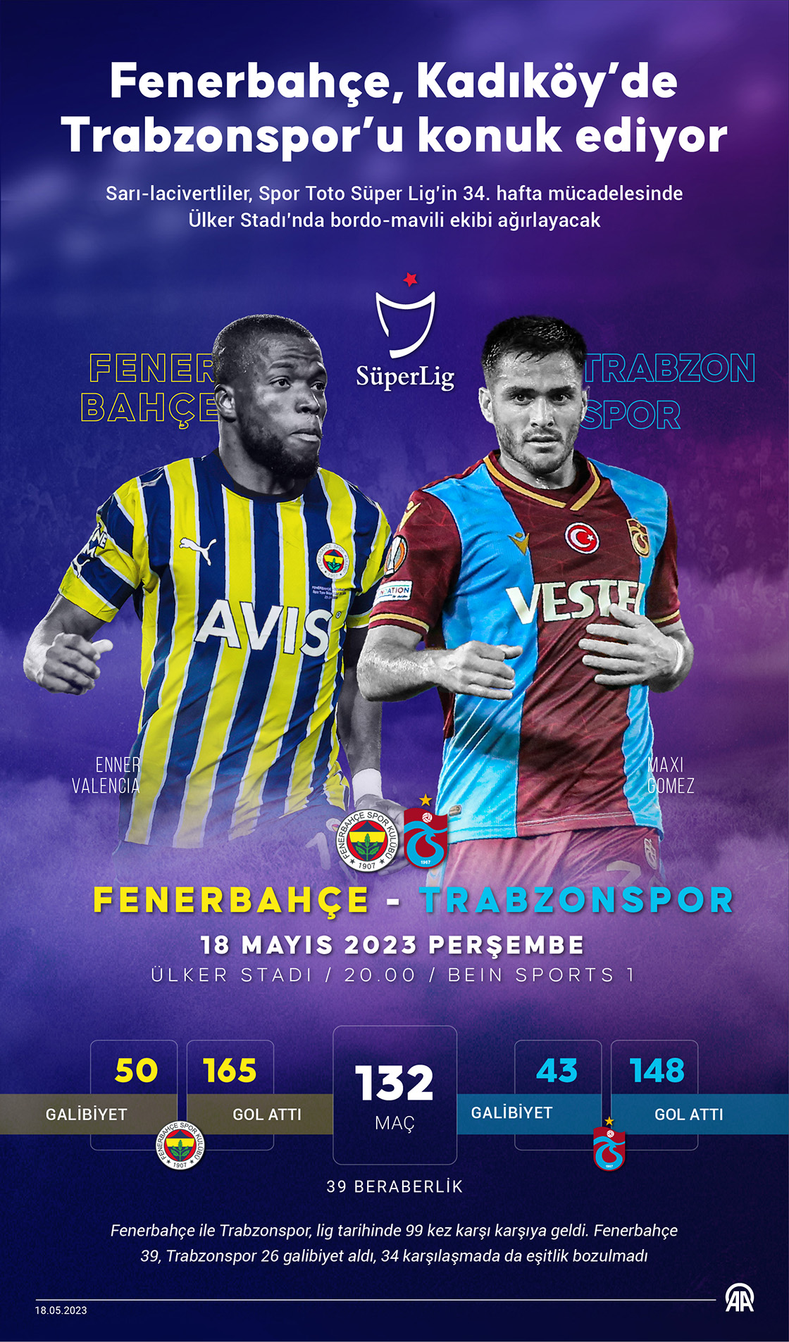 Sarı-lacivertliler, Spor Toto Spor Lig’in 34. hafta mücadelesinde Ülker Stadı’nda bordo-mavili ekibi ağırlayacak. (Grafik: Muhammed Ali Yiğit/AA)