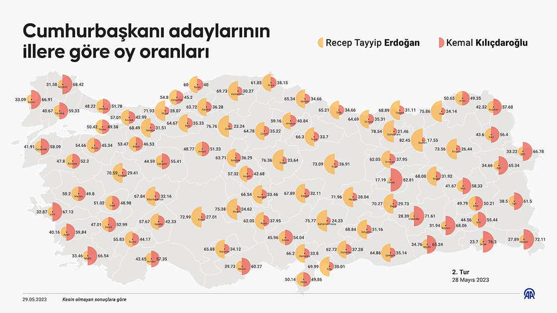 Erdoğan'ın oy oranı tüm illerde arttı, Kılıçdaroğlu'nun 11 ilde düştü